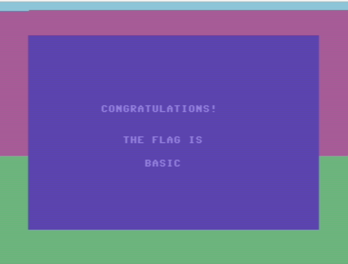 For this challenge we get an audio file called CTF-TAPe.wav. And since the TAP format is used for C64 lets try to convert this into a TAP file with WAV-PRG. When we have converted the Wave file to a TAP file we can open it with an C64 emulator like Vice. And when we run it we get the following.