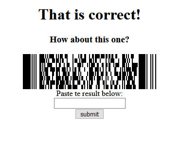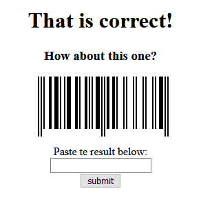 Decoding this with an online barcode reader gives us the text code-128-easy. Entering this gives us another barcode to scan.