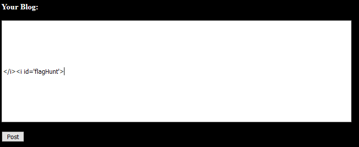 So we got some inputs that we may be able to inject some HTML tags to. Lets try the blog post field first.