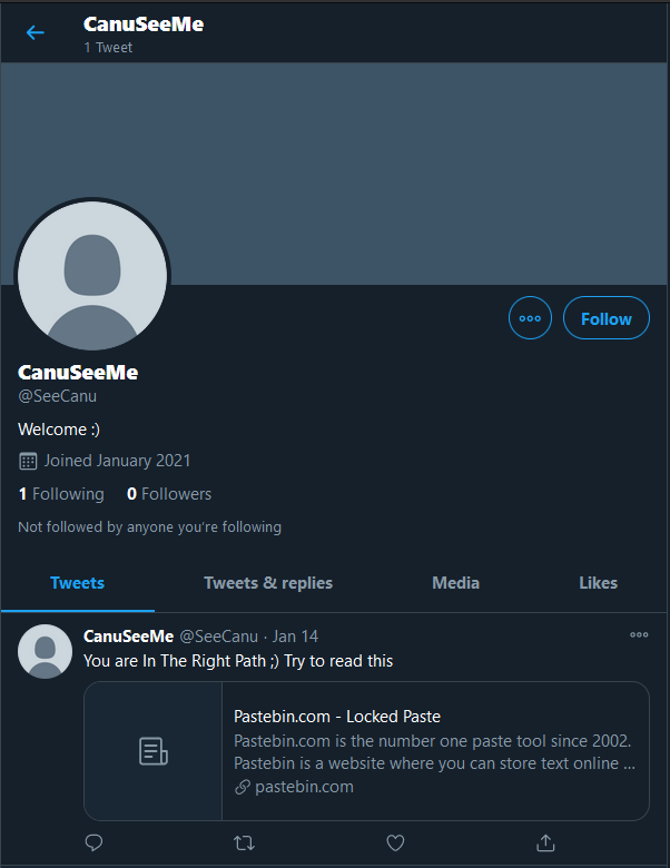 Taking a look at the followers of the account 0xL4ugh we find a bunch of possible accounts that can be the one that sent the message. Taking a look at the profile of the potential accounts we find the following account.