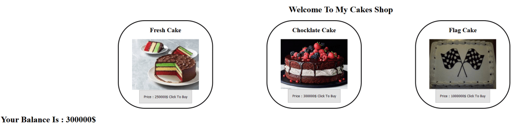 Here we got a web-shop for cakes and our goal is to buy the Flag Cake, but our current balance is below the price of the cake.