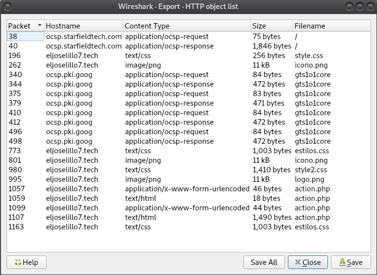 When we open the provided pcap file in Wireshark, we can see a bunch of HTTP packets. Opening the export HTTP objects we can see that some objects are captured.