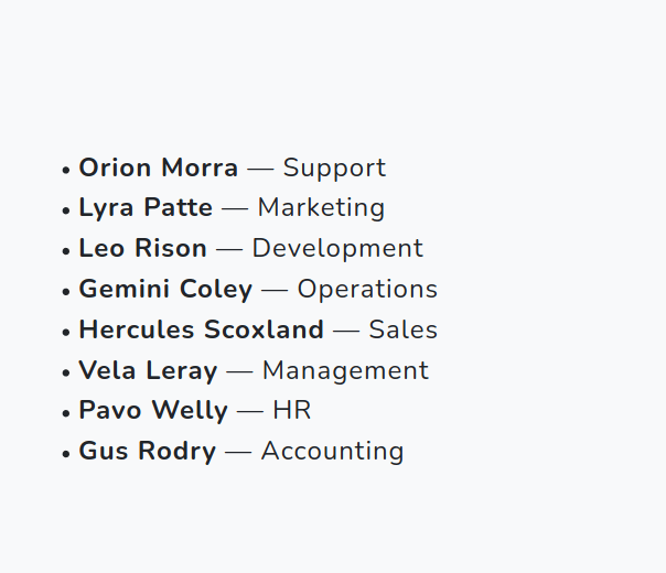 On the meet-the-team.html page we can see that the list of employees is redacted.