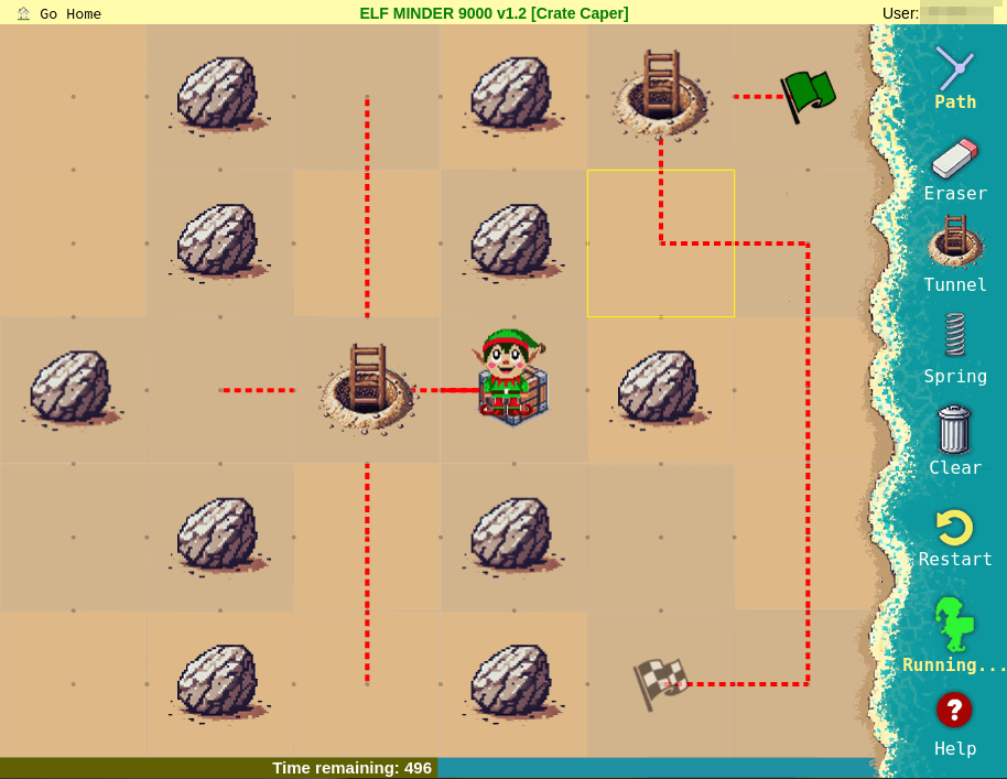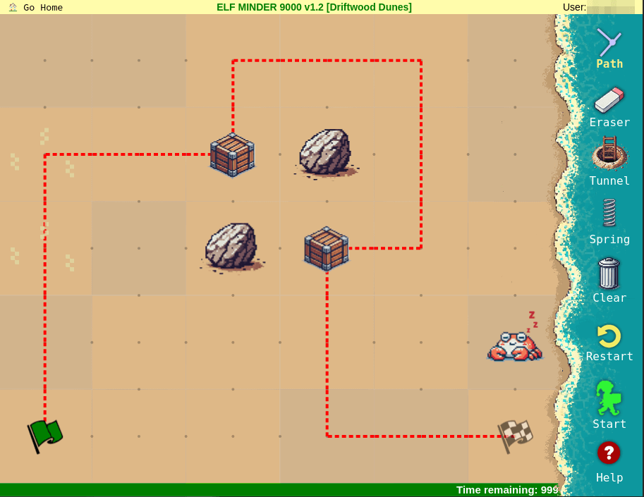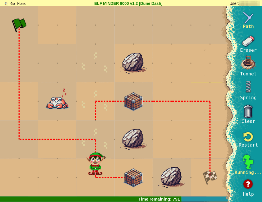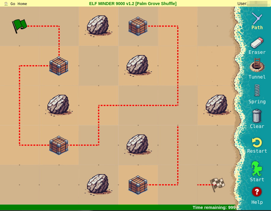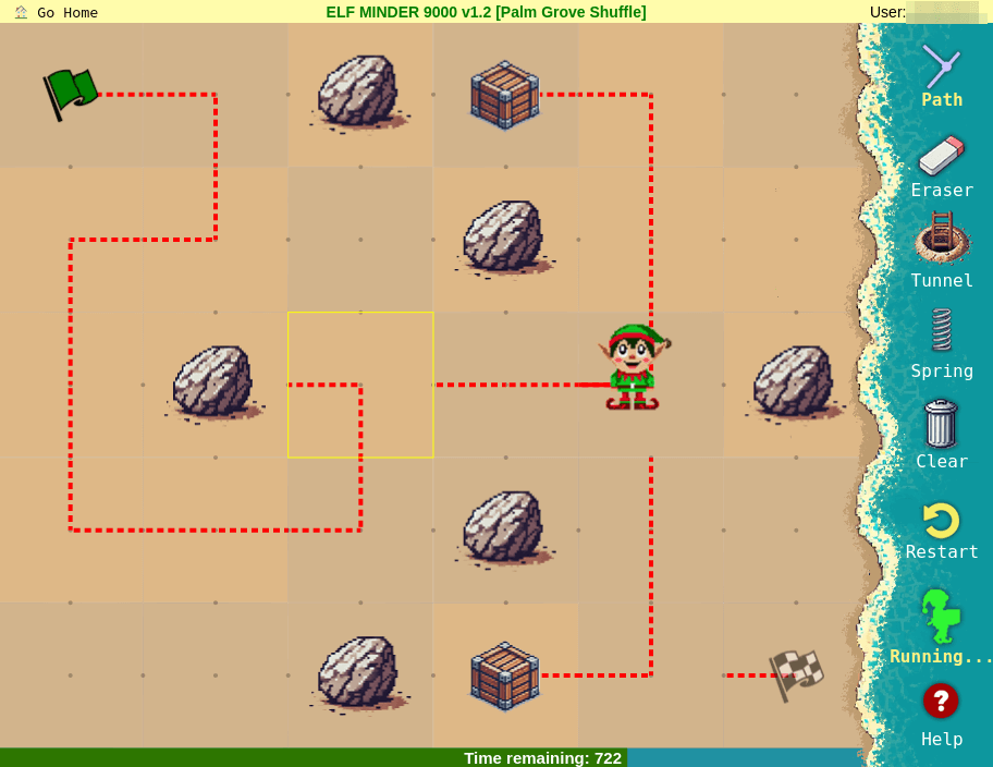 When the elf changes directions from the last clicked path segment, we click the path segment next to the finish flag to connect the path.